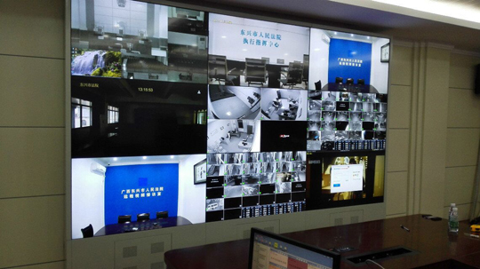 該項目采用了我司生產的55寸3.5MM液晶拼接屏,拼接規格為3x3,共計9塊大屏幕,很好的滿足了甲方監控的需求!