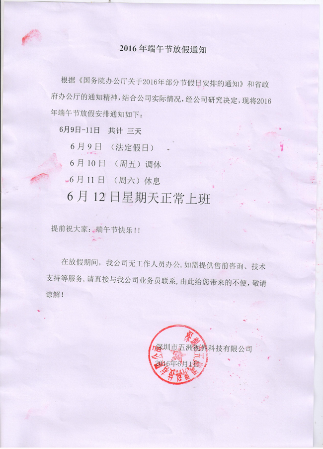 根據《國務院辦公廳關于2016年部分節假日安排的通知》和省政府辦公廳的通知精神,結合公司實際情況,現將2116年端午節放假安排如下: