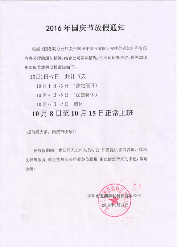 為方便大家的工作安排,現(xiàn)將我司2016年中秋節(jié)放假安排如下: