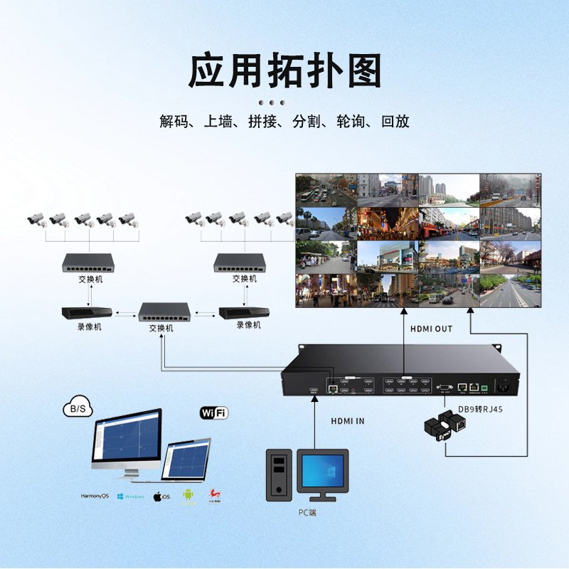 ①功能豐富:支持解碼/拼接/輪巡/畫面分割等功能;