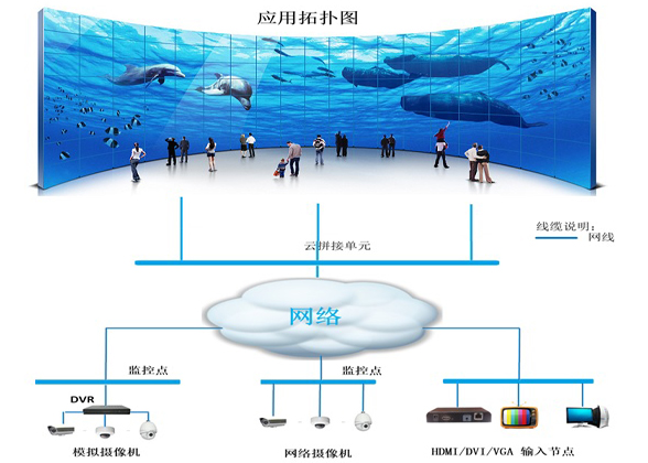 液晶拼接幕墻可將各類計算機模擬/數字信號、復合視頻信號、色差信號等在大屏幕上高清顯示,并實現信號的切換、疊加、組合等功能。