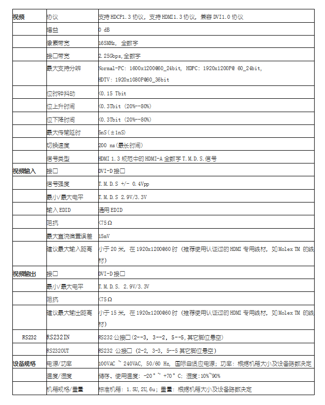 10、 本產品是具有高可靠性的智能設備,設計中采用容錯技術,并采用了高抗干擾能力的通信接口電路,保證了通信的可靠性,具有紅外遙控、手動控制和RS232控制功能,用戶可以方便的完成演示過程中的信號切換;