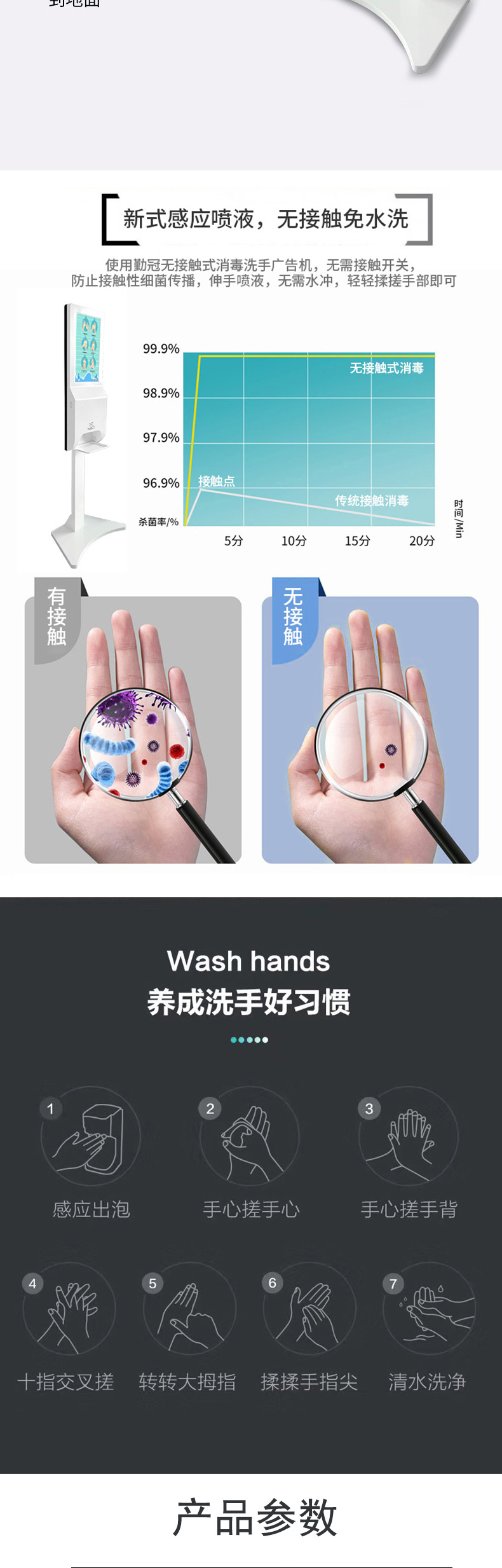 21.5寸智能測(cè)溫消毒廣告免接觸洗手液一體機(jī)壁掛款