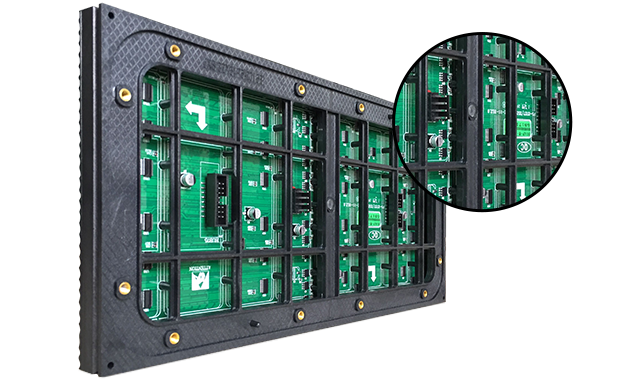 采用抗變形模組底殼套件,硬度強度高,抗紫外線、防塵、防水面罩,保障屏體平整不變形,防護等級可達IP65。