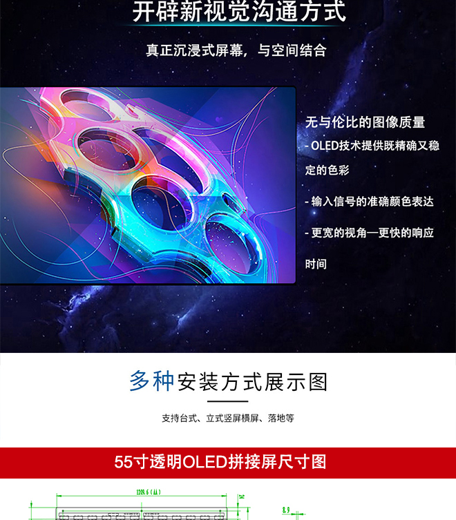 可拼接并擴展 - 自發光OLED技術提供纖薄、時尚的設計 - 可用單獨/拼接設計 - 縱向、橫向,天花板安裝都可 - 真正沉浸式屏幕,與空間結合