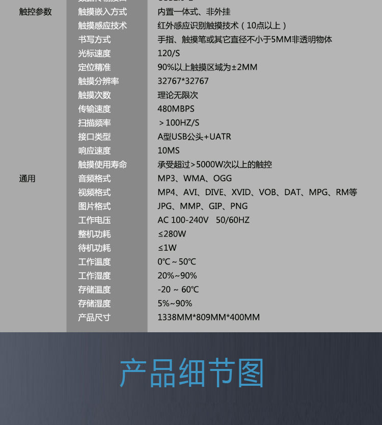 手指、觸摸筆或其它直徑不小于5mm非透明物體